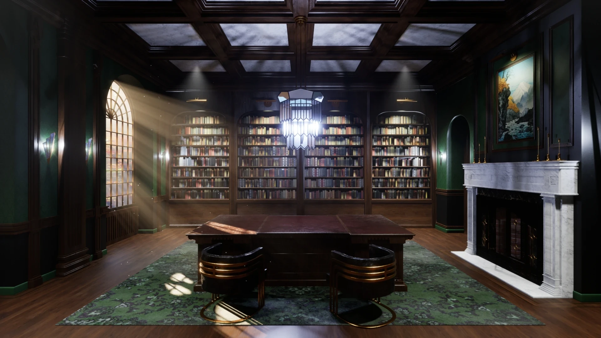 A home study inspired by turn of the century Victorian and art deco design.